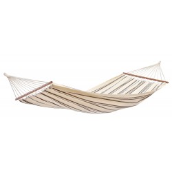 Avec 350g/m2 de coton épais et extensible il vous assure une sécurité absolue lors de vos siestes dans le hamac à barres Brésil. Sa largeur de tissu d'un mètre quarante vous offre un grand confort, une grande personne peut s’allonger et se reposer avec le plus grand confort. Nous déconseillons tout de même les hamac à barres pour les enfants, les hamacs à barres se retourne facilement.